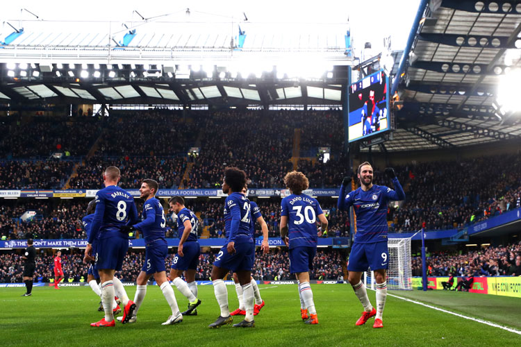 In the striker's third game since joining on loan on Juventus, Higuain turned the ball into the net in the 16th minute and curled in Chelsea's fourth in the 69th.