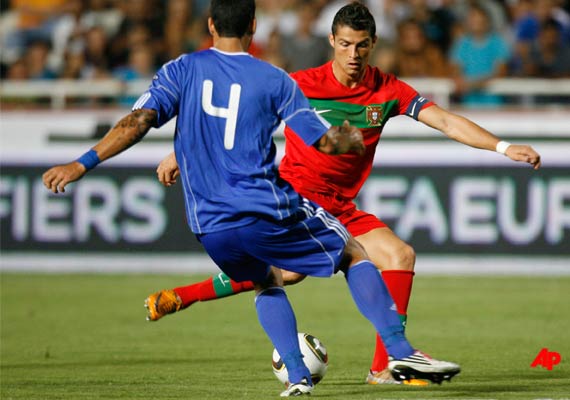 Nicosia, Sept 3: Cristiano Ronaldo scored two goals and set up another as Portugal thrashed a 10-man Cyprus side 4-0 away to stay top of Euro 2012 qualifying Group H on goal difference.