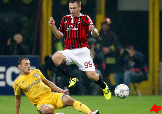 Cassano missed the 1-1 draw with BATE Borisov on Tuesday that qualified Milan for the next round of the Champions League.