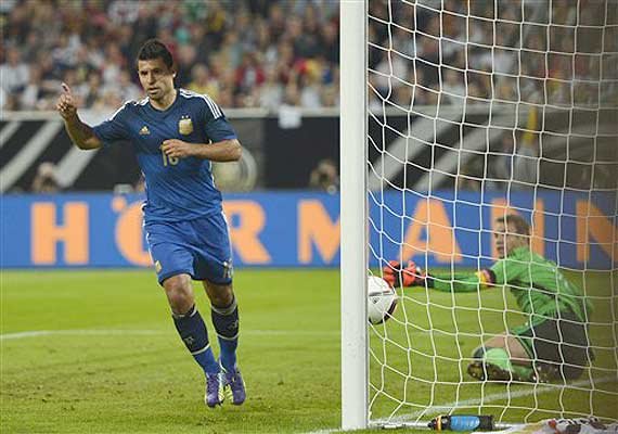 Argentina goalkeeper Sergio Romero then got the better of Mario Gomez in a one on one at the other end. Gomez, back in the side after missing out on the World Cup due to fitness concerns, missed three chances to score with the goal at his mercy. The Fiorentina striker was whistled by fans after his last miss and again when he was substituted.