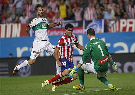 Diego Costa showed no signs of the deep cut in his left shin he received last week when he slammed into the goal post while scoring at Getafe, with the Brazilian striker causing Elche's defense trouble from the start.