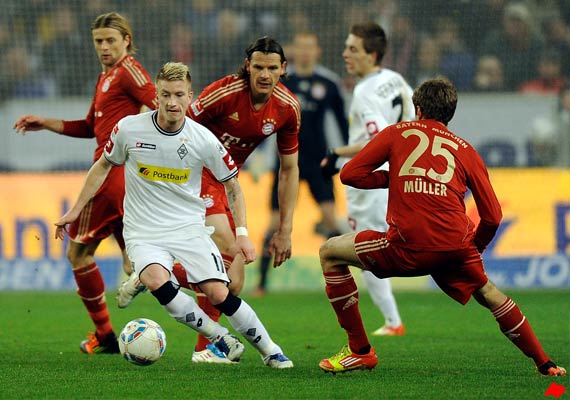 Berlin, Jan 21: Marco Reus scored one goal and set up another as Borussia Moenchengladbach threw the Bundesliga title race wide open by beating leader Bayern Munich 3-1 Friday in the first game after the winter break.