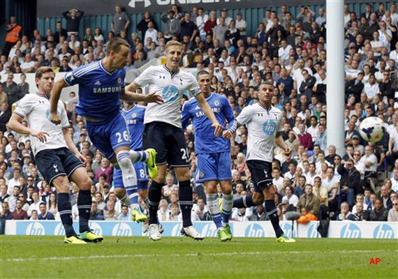 The Blues were awarded a free kick when Vertonghen tripped Ramires as he ran through on goal, and then Terry became the first opponent to score at White Hart Lane all season in the 65th minute.
