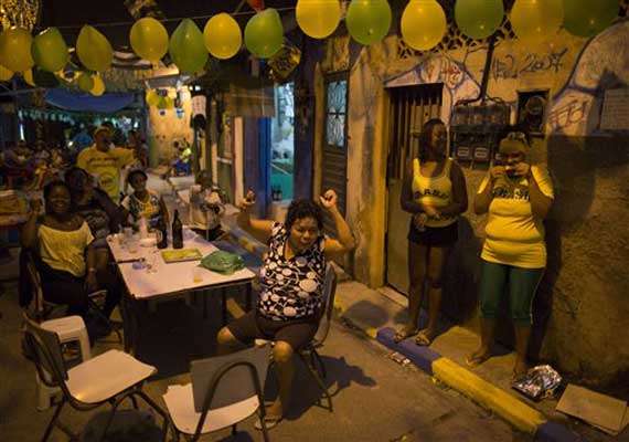 At the other end of Brazil's highly stratified income ladder, in the Santa Marta slum, a group of mostly black residents sent beers flying and jumped in place ecstatically after the tying goal.