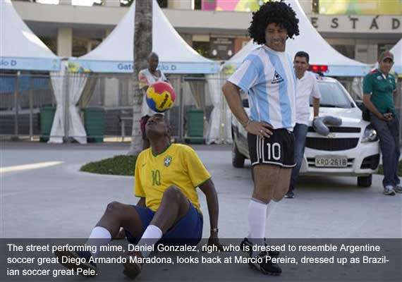 In the run-up to Thursday's World Cup opener, the two street artists have been competing head-to-head -- for the pocket change of fans from around the world, who flock to Brazil's Temple of Soccer, below the statue of 1958 captain Hilderaldo Bellini lifting above his head the first of the country's five championship trophies.