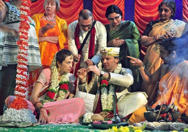 The 'remarriage' was held in a spiritual atmosphere sticking to all Hindu customs and traditions. Dressed in traditional attire, the couple were told about the meaning of every ritual performed.