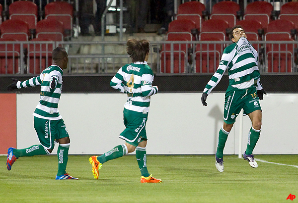 Torreon (Mexico), Apr 5: Herculez Gomez scored twice in the first half and Juan Pablo Rodriguez had a pair of second-half penalties to give Santos Laguna a 6-2 victory over Toronto FC on Wednesday and ensure an all-Mexican CONCACAF champions league final for the third time in four years.