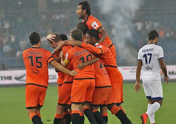 New Delhi: Delhi Dynamos fired three stunning goals and scored another one from the penalty spot to outplay Chennaiyin FC 4-1 to record their first win in the Hero Indian Super League here on saturday.