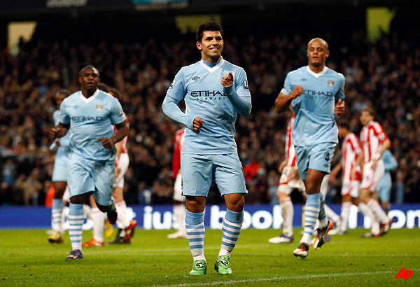But the goal finally arrived when David Silva's pass freed Yaya Toure who sent a low, hard cross into the Stoke six-yard box. City defender Vincent Kompany made slight contact at the near post and goalkeeper Thomas Sorensen could only deflect the ball into the path of Aguero who tapped the loose ball home from point-blank range.