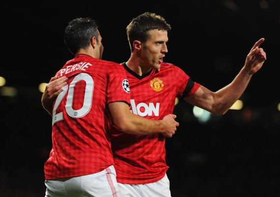 Robin van Persie and Shinji Kagawa made their European debuts for United and were both involved in setting up Carrick's goal.