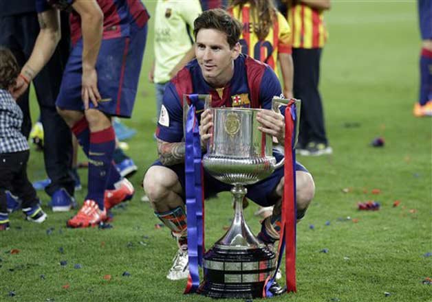 Barcelona, Spain : Lionel Messi scored a stunning opener before adding a second goal to lead Barcelona to the Copa del Rey title with a 3-1 victory over Athletic Bilbao on Saturday, giving the Catalan club its second of three possible trophies before it turns to the Champions League final.