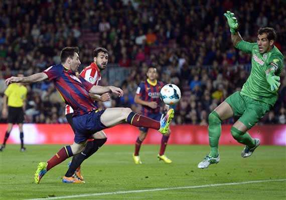 Messi set up his winner after earning a foul on the edge of the area, and the Argentina forward used his left foot to finally beat Gorka Iraizoz after the goalkeeper had denied him twice.