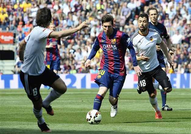 Valencia striker Paco Alcacer went close several times before Barcelona settled down after halftime, and Messi netted his 35th league goal of the season right before the final whistle.