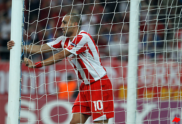 The defending champions continued to search for an equalizer early in the second half but only managed to threaten in the 60th minute when David Fuster's volley sailed over the bar. Olympiakos' attacks grew increasingly desperate until four minutes from time when Pantelic, who had come in for Djamel Abdoun in the 57th, sent a long ball to Djebbour on the left. The Algerian dribbled past a defender and sent a cross to the onrushing Pantelic who headed the ball home.