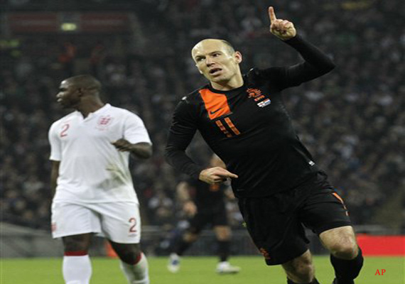 Wembley, England, Mar 1 : Plagued by injuries since the 2010 World Cup, Arjen Robben provided a timely reminder of his enduring quality by scoring a pair of classy goals in the Netherlands' 3-2 friendly win over England on Wednesday, 100 days before Euro 2012.