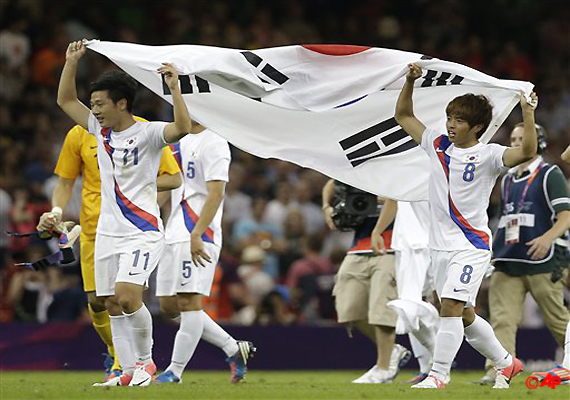 "I'm very happy to win the bronze medal and everybody here will now get a new chance by being exempted from military service, said striker Park Chu-young, who scored a stunning first goal. "That's what I'm really pleased about because that was our aim at the start of the tournament."