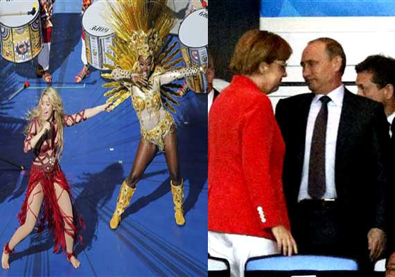 Celebrities rubbed shoulders at the stadium, starting with Shakira singing and Carlos Santana playing guitar during the closing ceremony.