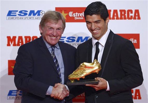 Suarez received the award from former Liverpool coach Kenny Daglish who signed the forward for the Merseyside team in 2011.