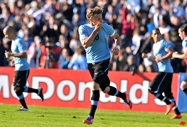 Uruguay: Fernando Muslera, Maxi Pereira, Diego Lugano (Sebastian Coates, 77), Diego Godin, Martin Caceres, Diego Perez (Alvaro Gonzalez, 74), Egidio Arevalo, Alvaro Pereyra, Diego Forlan, Luis Suarez, Edinson Cavani.