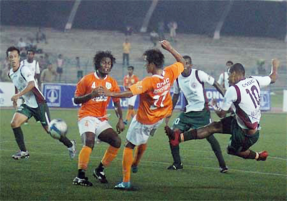 The home team, which trailed 1-2 at half-time, scored through Kalu Nnana Ogba (24th), Fernandes (49th, 50th) and James Moga (70th), while the visitors scored through P C Lalhlimthara (10th, 56th) and John Menyongar (40th minute penalty).