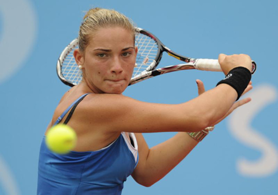 Thursday's other match saw Luxembourg's Mandy Minella defeat Kazakhstan's Yaroslava Shvedova 6-3, 6-7 (1), 6-4. Minella will meet second-seeded Sara Errani in the last eight.