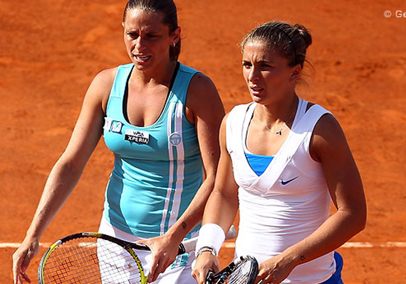 Paris, June 8 : Sara Errani and Roberta Vinci of Italy won their first Grand Slam doubles title, beating Maria Kirilenko and Nadia Petrova of Russia 4-6, 6-4, 6-2 in the French Open final on Friday.