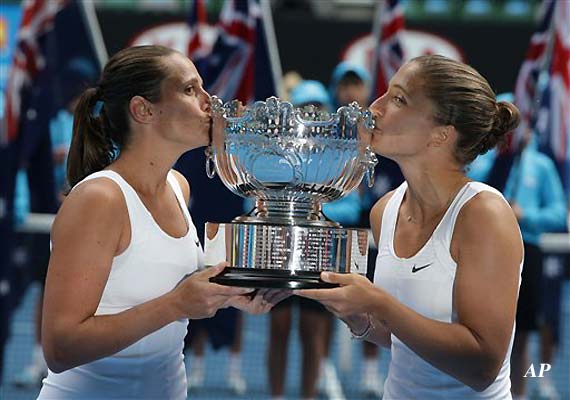 Melbourne, Jan 25: Top-seeded Sara Errani and Roberta Vinci of Italy have won the first Australian Open title of 2013, beating the unseeded Australian pair of Ashleigh Barty and Casey Dellacqua 6-2, 3-6, 6-2 for the women's doubles championship.