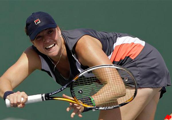 Ekaterina Makarova of Russia, the player who upset Serena Williams at this year's Australian Open, outlasted Jelena Dokic 6-1, 7-5.