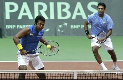 Their was no looking back and the Indians easily pocketed the set when Gabashivili failed to return a Paes volley. Gabashvili served well and played more aggressively but could not do much against the rampaging Indian pair. The Indians raced away to a 4-0 lead in the second set with a double break.