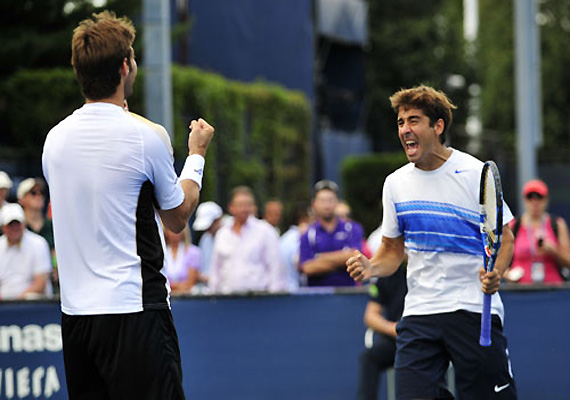 Marcel Granollers and Marc Lopez, partnering for the first time, eased to a 6-2, 6-3, 6-1 victory over Kazakh pair Evgeny Korolev and Yuriy Schukin on indoor clay.