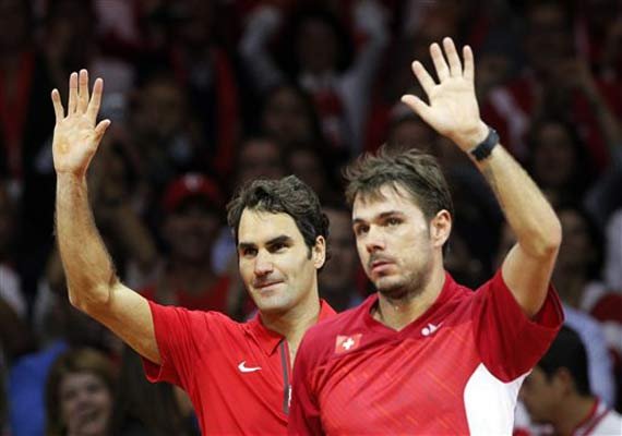The teams ended the opening singles on Friday level, after Wawrinka defeated Jo-Wilfried Tsonga and Federer lost in straight sets to Gael Monfils.