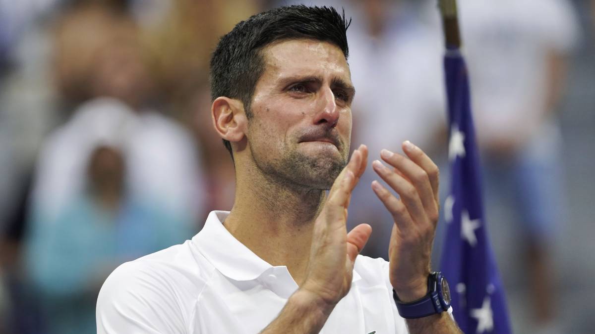 A game from the end of his bid for what would have been the first calendar-year Grand Slam in men’s tennis since 1969, Novak Djokovic covered his face with a towel, hiding his tears during a changeover.