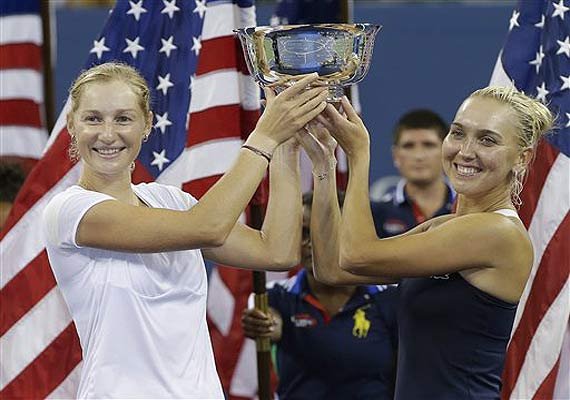 NEW YORK : Ekaterina Makarova and Elena Vesnina won their second Grand Slam women's doubles title, ending Martina Hingis' run at the U.S. Open. The fourth-seeded Russians rallied after losing the first set to beat Hingis and Flavia Pennetta 2-6, 6-3, 6-2 on Saturday night.