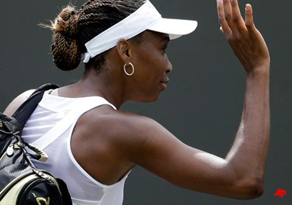 England, Jun25: Five-time champion Venus Williams was eliminated 6-1, 6-3 by Elena Vesnina of Russia at Wimbledon on Monday, the first time the American has lost in the opening round at the All England Club since her debut 15 years ago.
