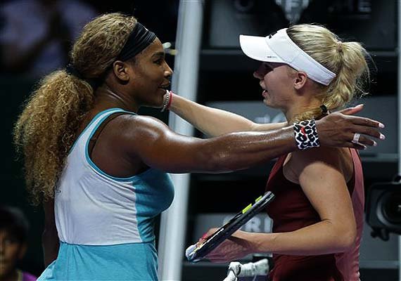 Wozniacki, who had a perfect 3-0 record in the group stage, took the opening set in 26 minutes and held serve to open the second. Williams, sensing she was slipping out of the contest, roused herself as she won the next game to love, celebrating every point with shrieks and fist pumps.