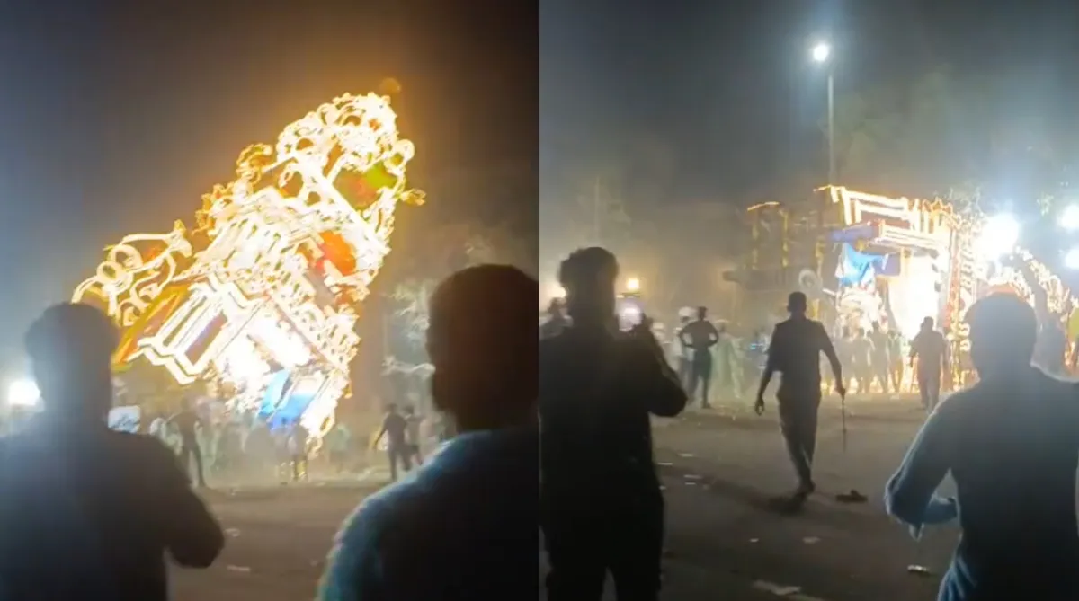Further details are awaited as officials assess the circumstances that led to the chariot overturning during the festival procession. The acident was caught on camera by bystanders, showing the moment when the tall structure collapsed onto people nearby.