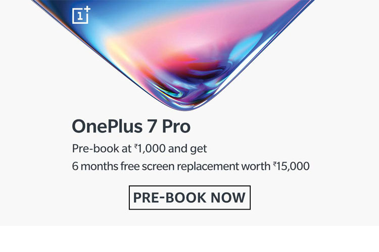 Users can also walk-in to any OnePlus Store, Croma and Reliance stores to pre-book the OnePlus 7 Pro at Rs 2,000 that can be redeemed on the purchase of the device, starting from 8th May 2019. The user who walk-in and book the phone will be eligible for the similar one-time accidental screen replacement of the device.