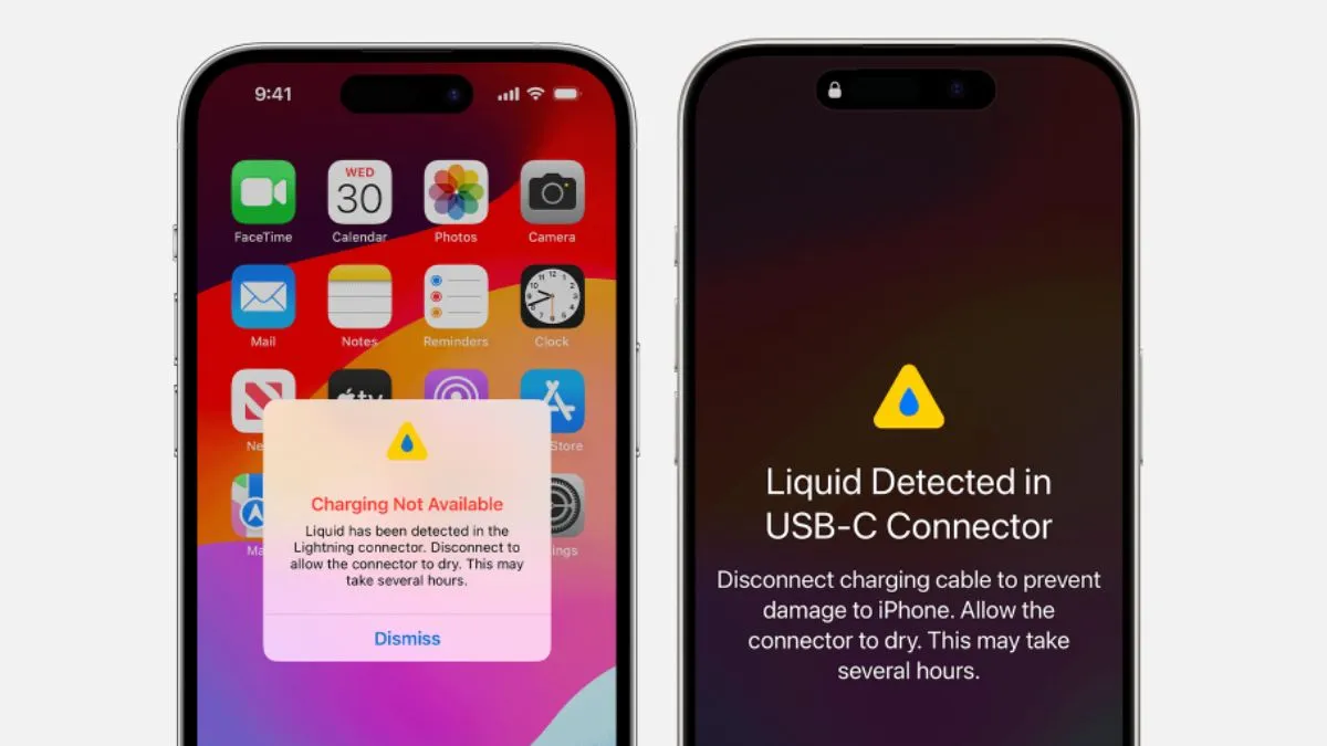According to Apple, if your iPhone gets wet, the best thing to do is gently tap it against your hand with the connector facing down to remove excess water. Then, place the phone in a dry area with some airflow. After waiting for 30 minutes, you can start charging it with a USB-C or lightning connector. It may take up to 24 hours for the iPhone to fully dry, and you might see a liquid detection alert during this time.