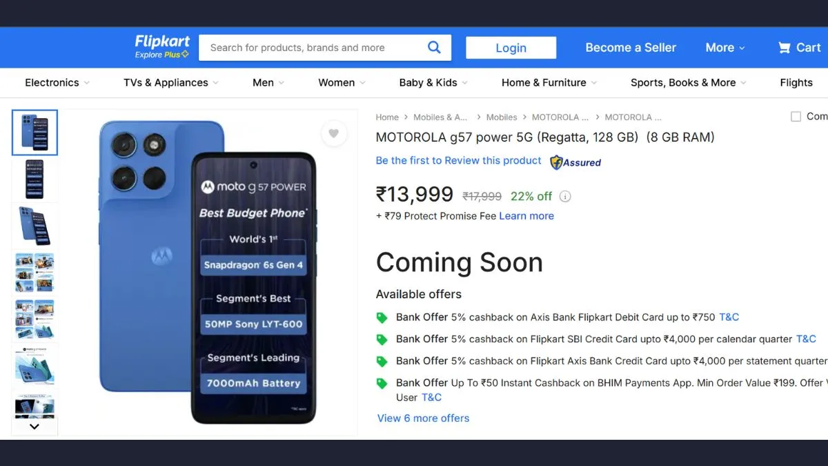 Motorola has priced the Moto G57 Power at Rs 14,999 for the 8GB RAM + 128GB storage variant. The phone is available in three PANTONE-certified colours: Regatta, Corsair, and Fluidity.