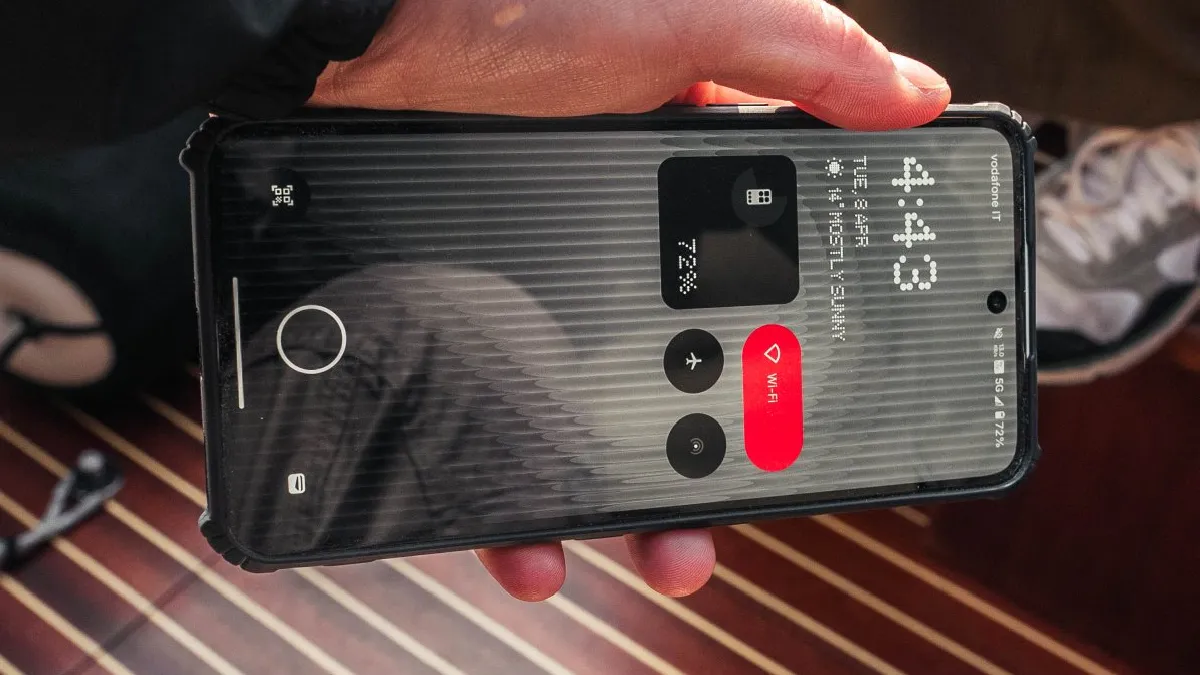 The device retains Nothing’s signature transparent rear design, showcasing visible screws and internal components beneath a glass panel.