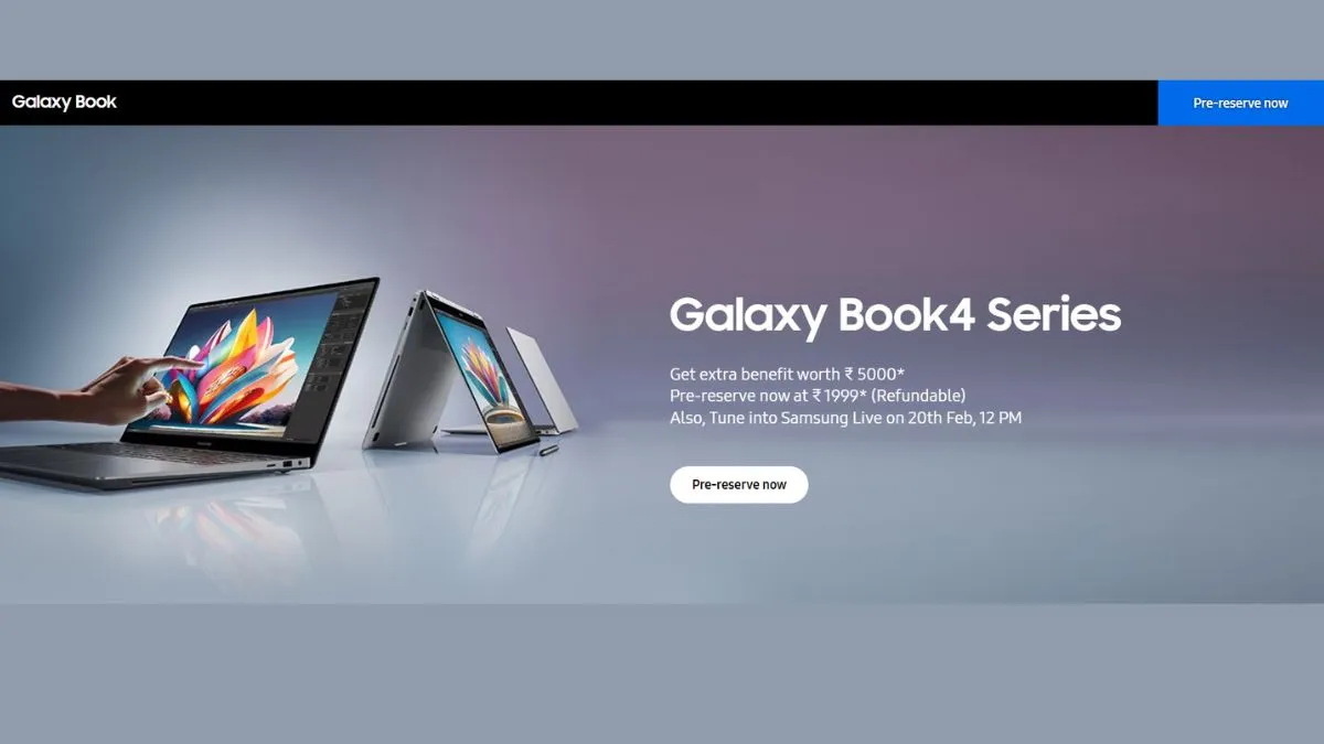 Samsung has officially stated that the pre-booking of its AI-powered Galaxy Book4 series will be available in India from February 20 onwards. Those who are willing to pre-book the Galaxy Book4 series, which includes Galaxy Book4 Pro 360, Galaxy Book4 Pro and Galaxy Book4 360 could visit the the company's official website, along with the leading online stores and select retail stores in the country. The Galaxy Book4 Pro 360, Galaxy Book4 Pro and Galaxy Book4 360 will be priced at Rs 163,990, Rs 131,990, and Rs 114,990, respectively.
