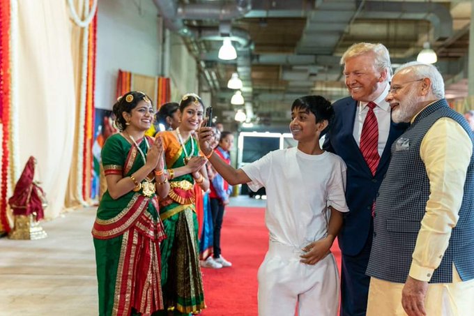 Prime Minister Narendra Modi on Sunday addressed the mega 'Howdy, Modi' event in Houston with over 50,000 Indian-Americans present at the NRG stadium. He and Trump then took a tour of the NRG stadium and interacted with a few youngsters -- one of which asked the two for a selfie.