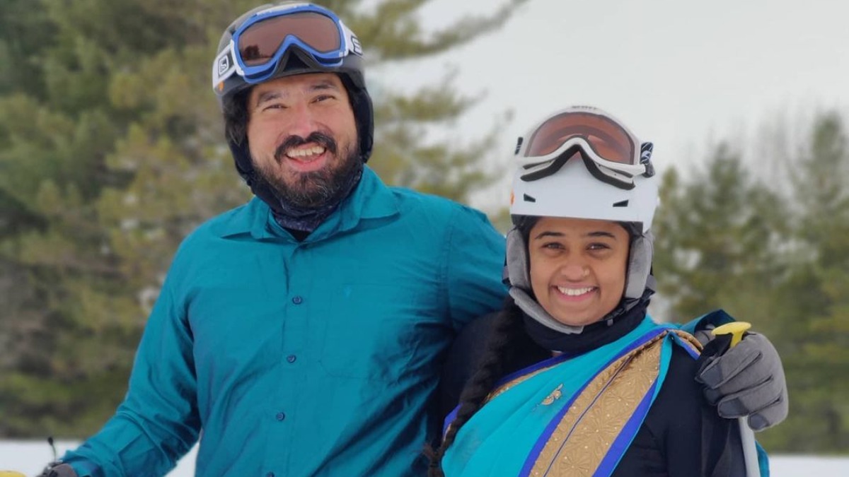 It is important to always keep up the spice in any relationship. There are lot of people all over the world who have set examples of how necessary adventure is in one's life. Another one that has caught our attention is a NRI couple who made up their mind to go skiing on the mountain slopes in the US. The videos and pictures of the couple named Divya and Madhu have gone viral on the internet and were shared by them on Instagram. It isn't a normal skiing video as the clothes that the duo opted caught everyone's eyeballs. They were seen effortlessly gliding through the snow wearing traditional attire. Divya, on one hand, was seen wearing a blue saree over leggings and a pullover while Madhu opted for a dhoti.