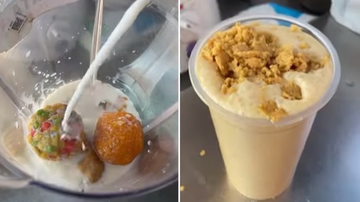 In the viral clip, the vendor made the milkshake with different types of laddus. First, he blended the besan laddoos with sugar powder, then he took motichoor and boondi laddoos. Then added some milk and ice cream to it and blended it together to make a shake. Well, how could he forget the presentation, he garnished besan laddu as a topping. “Kaisa laga experiment (How did you find the experiment to be?)” reads the caption of the post.