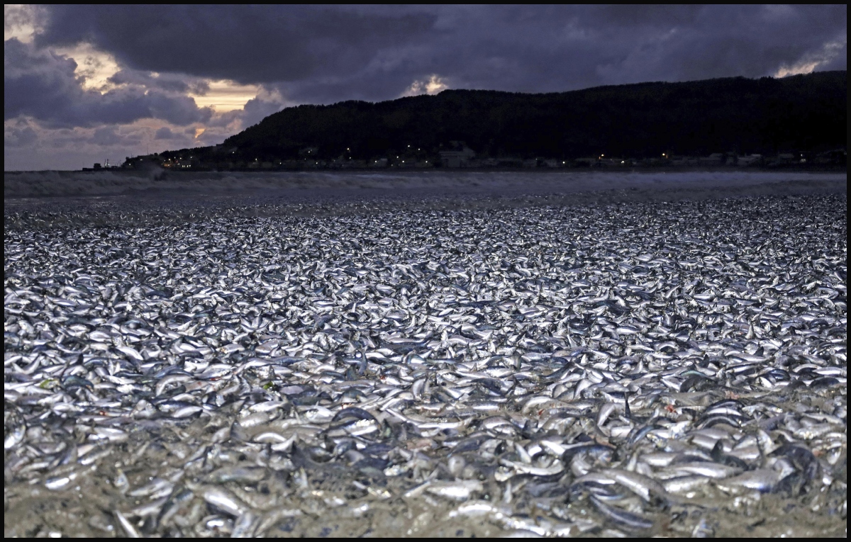 In a bizarre phenomenon, thousands of dead fish, including sardines and mackerel, washed up on a beach on Thursday in Japan's Hakodate area, located on the main island of Hokkaido. The dead fish created a kilometer-long 'silver blanket' on the beach and left residents in complete shock, with no confirmed reason as to why this happened.