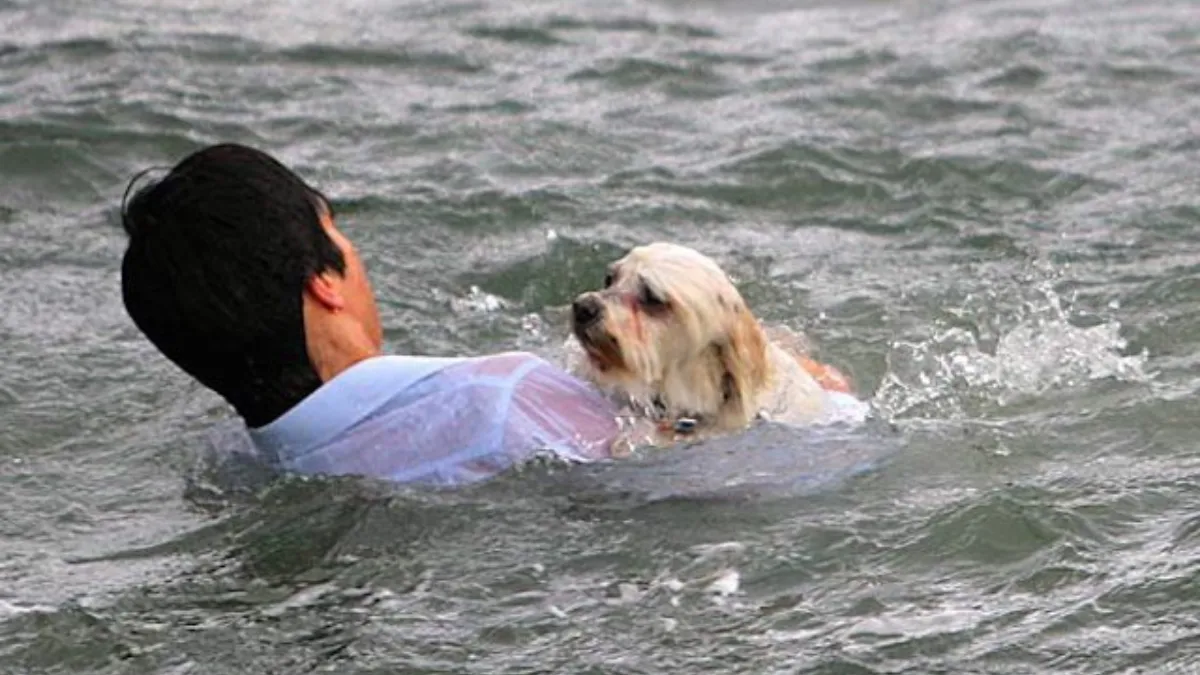 A heartwarming video spreading on social media shows a man from Manipur jumping into floodwaters to save a drowning dog trapped in a strong torrent. According to the caption, the man braved the swift water to rescue the distressed animal that had been washed away.