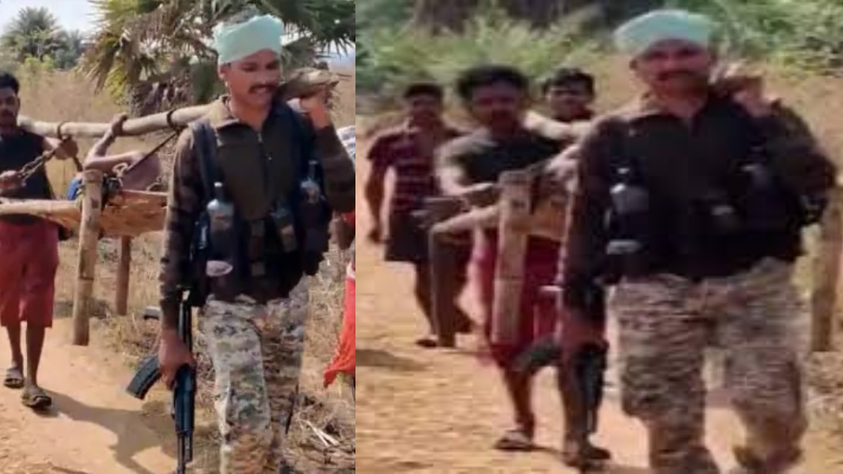 In the video, which has now gone viral on social media platforms shows the armed jawan holding a gun in one of his hands. With his other hand, he is seen carrying a cot while the pregnant woman lies on it. The cot is held by another man, seemingly a local, from the opposite side. There are two more men who are walking behind them.