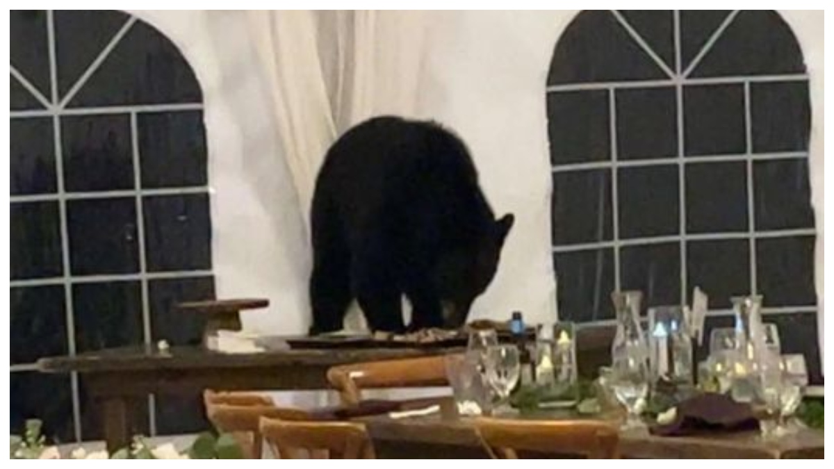 The wedding reception of a couple in Colorado state of US became memorable after a bear crashed the event of their special day. The bear stole the spotlight after it entered the wedding venue and crashed their dessert table. Cailyn MacRossie-Martinez tied the knot with Brandon Martinez on July 31 in the outskirts of Colorado Boulder and the bride shared a series of pictures from her wedding on her social media accounts. One of the posts features a bear on a table standing and eating all the desserts. ''Then a bear ate our dessert bar,'' she captioned the photo.