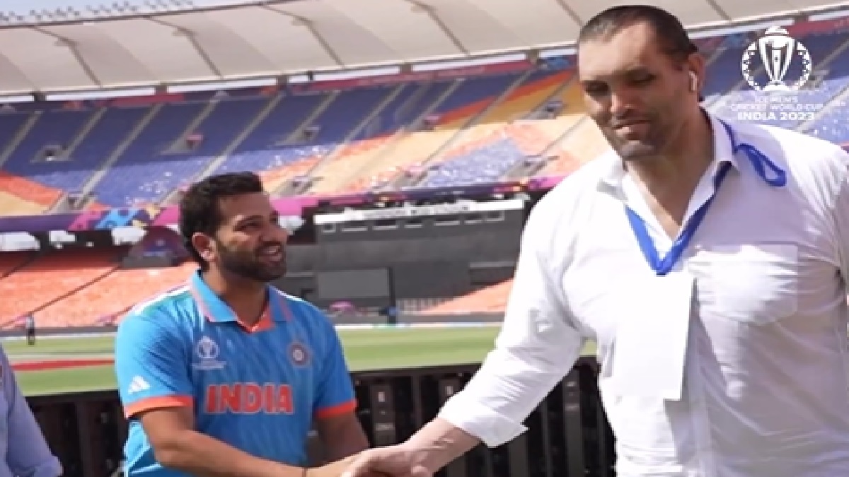 Indian team skipper Rohit Sharma, who also attended the Captain's meet, was the talk of the town. Whether it was about a brief interaction with Pakistan's captain Babar Azam or roasting a reporter over some question, Rohit remained in limelight throughout the day. But what grabbed everyone's eyeballs was his meeting with The Great Khali during a World Cup photoshoot with the trophy.
