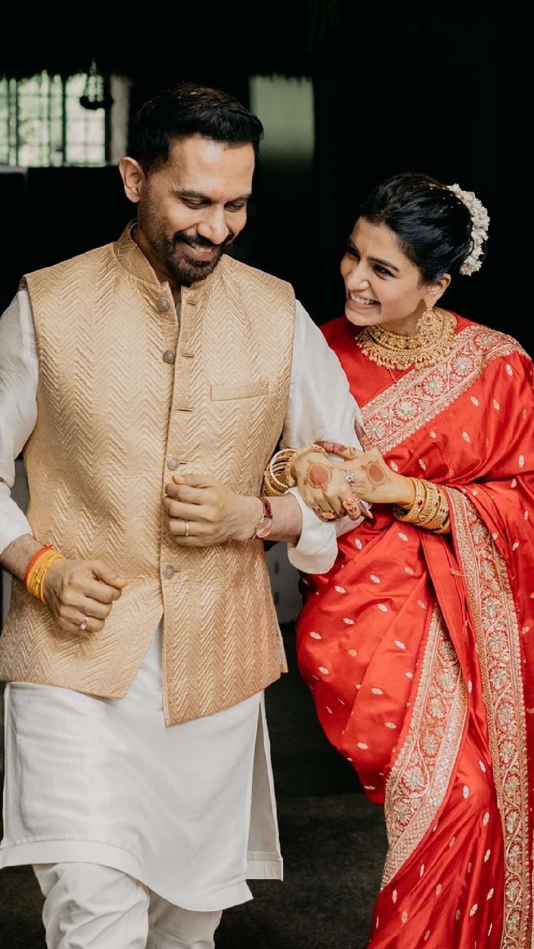 Image Source : Instagram/Samantha Ruth PrabhuSamantha held onto her husband, Raj, tightly after the wedding ceremony.